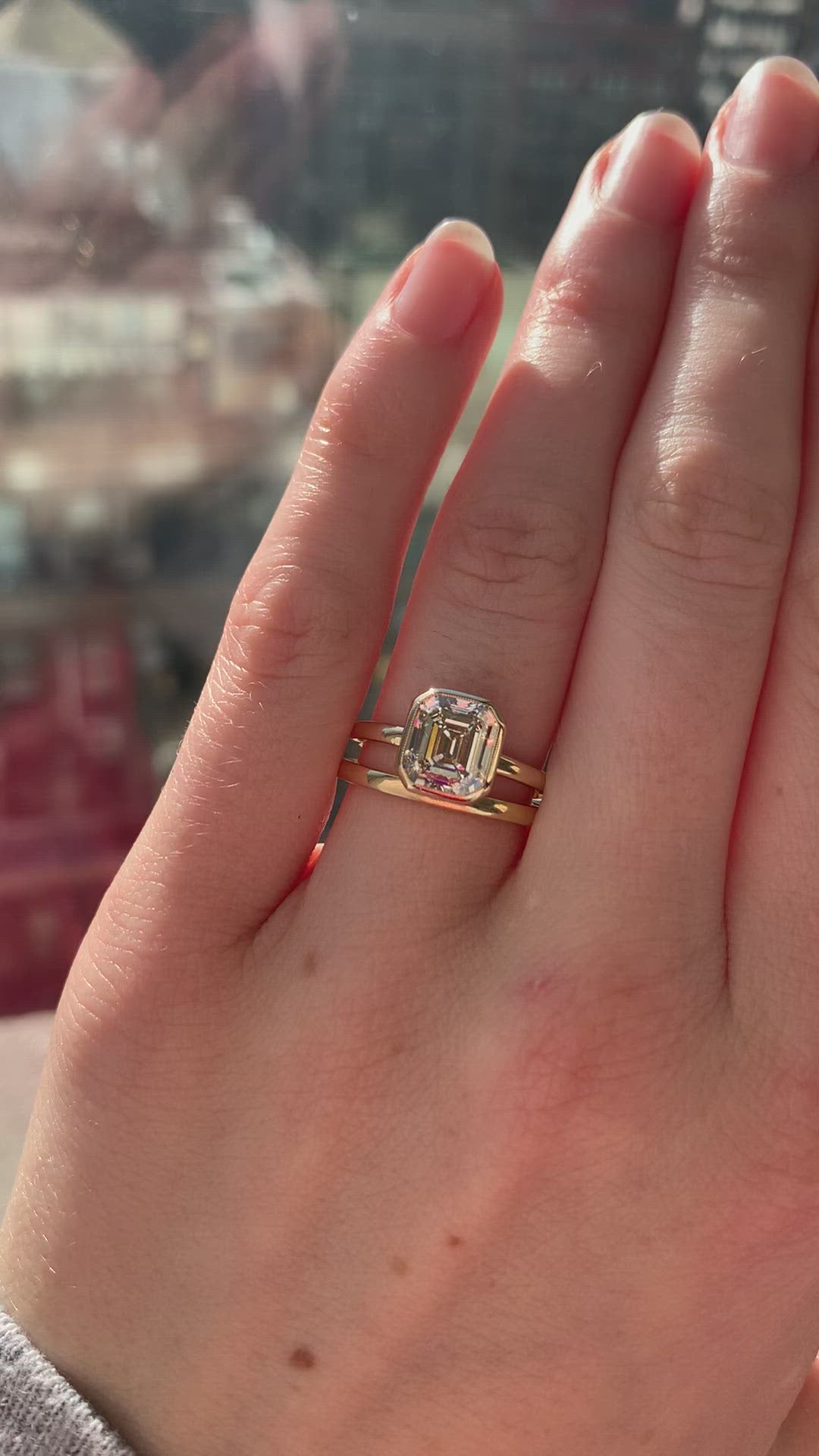 The Varvara 2.44 ring is a VB original design made right here in NYC centering a vintage diamond. The ring centers a GIA certified 2.44-carat Emerald cut diamond of L color, VVS1 clarity. The stone is bezel-set in a sleek 18kt yellow gold setting with super fine millegrain details around the center stone. The ring is currently size 6.25 and can be resized!
