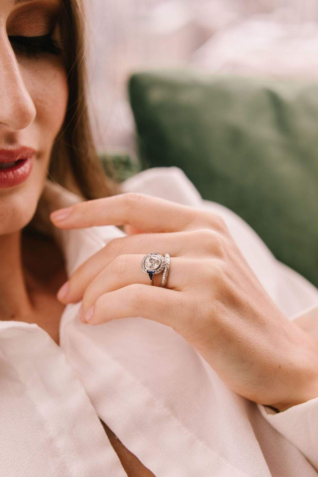 Diamond & Sapphire Bezel Halo Engagement Ring