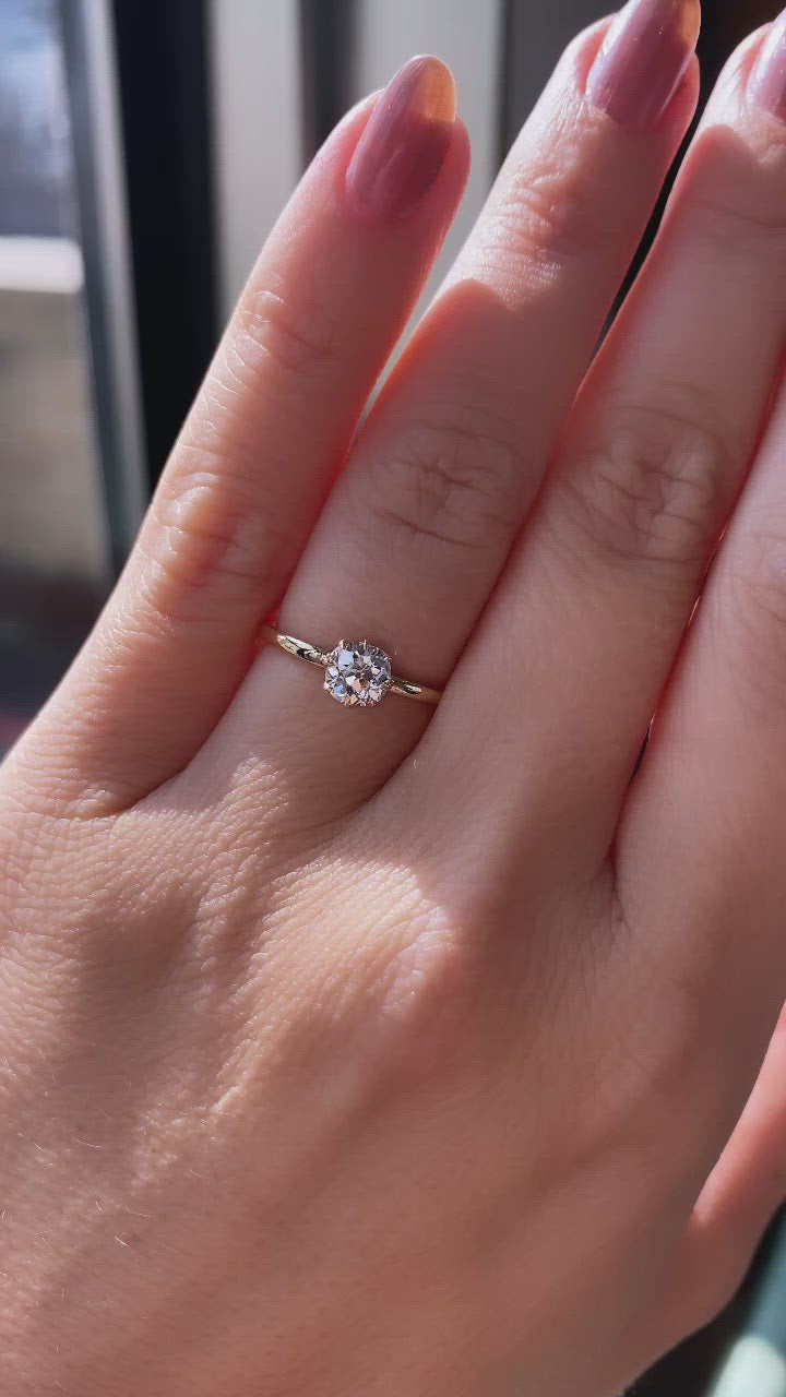 Simple and elegant with a bright white, beautiful old mine cut diamond at the center.