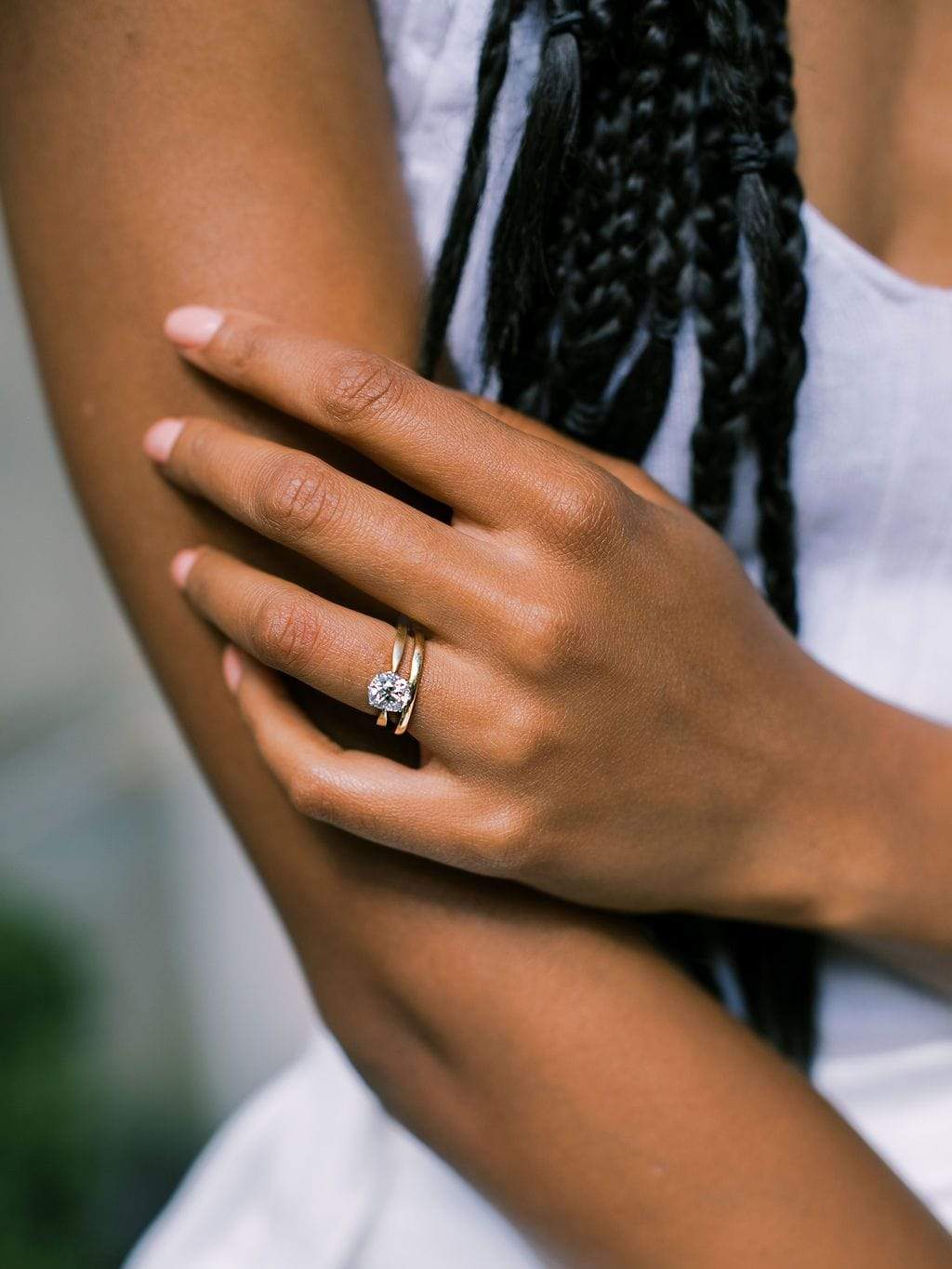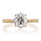 A classic and beautiful solitaire with just a hint of boldness in the band that is a hair chunkier. The ring centers a beautiful, high-quality antique diamond.