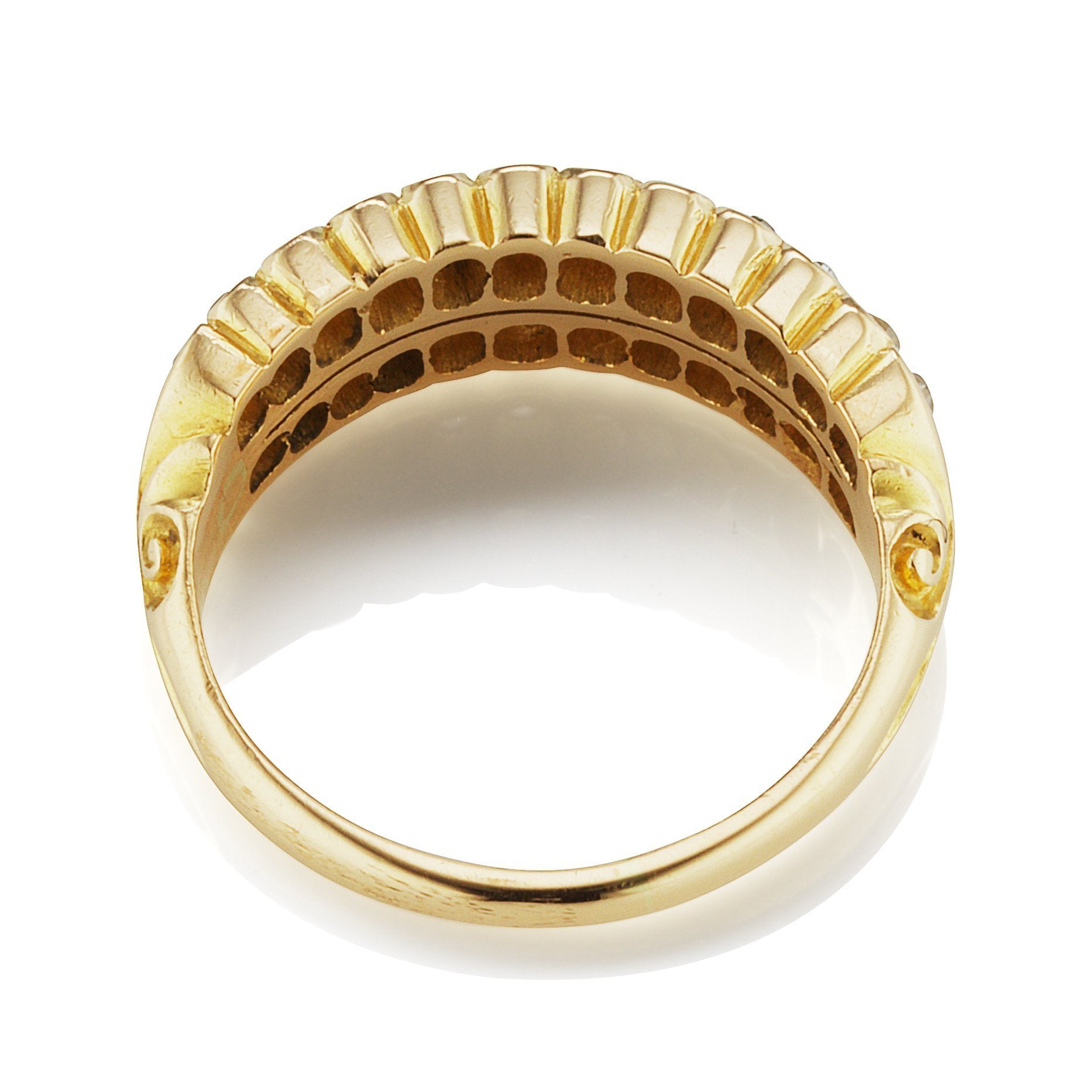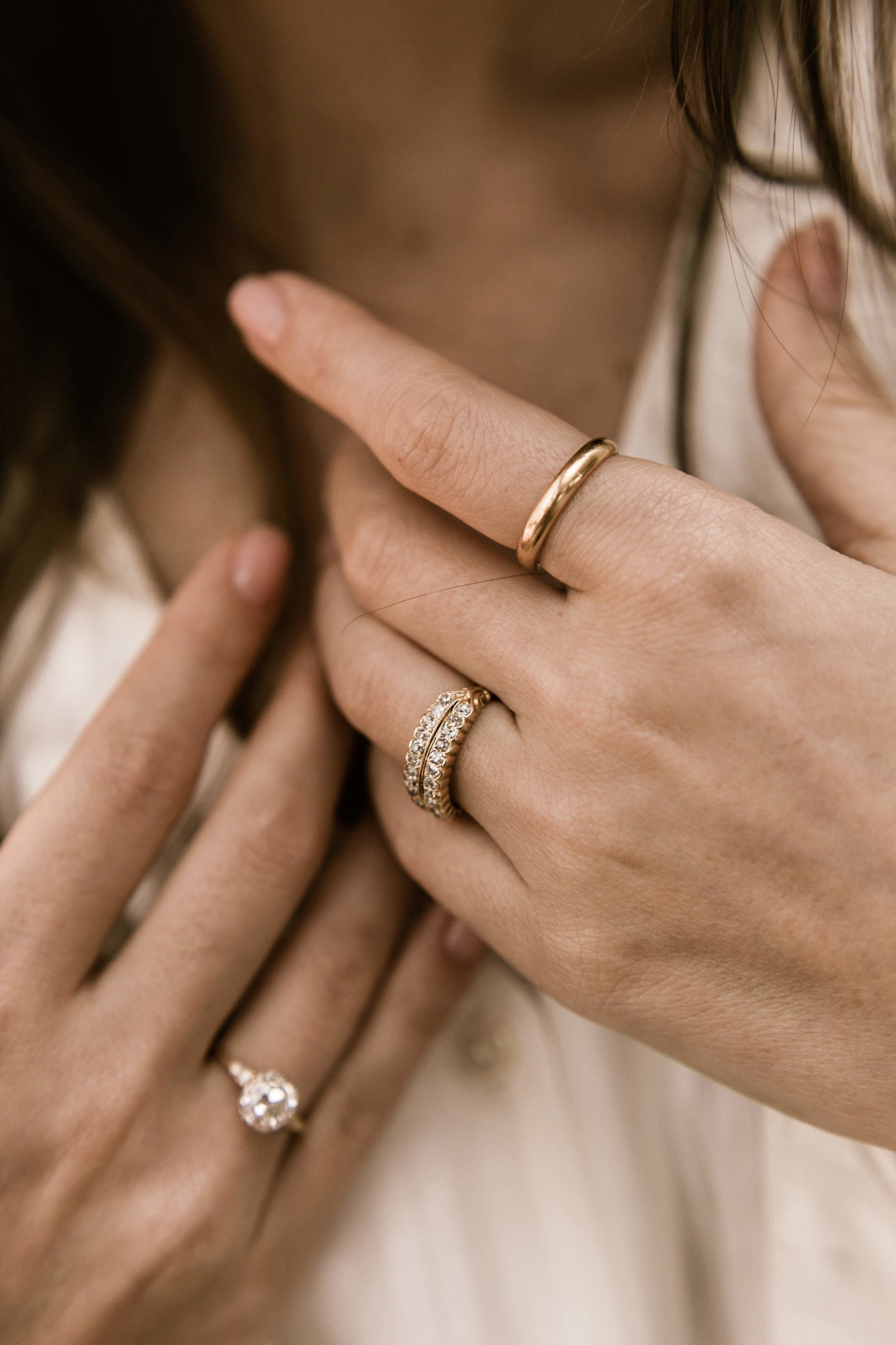 Old mine cut diamond bands are not an easy find so we are so excited when we find one! This beauty hails from the UK and has some super chunky diamonds set in this rich antique yellow gold!