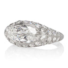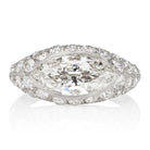 The Breton ring is an authentic vintage ring from the late Art Deco Era circa 1935. The ring centers a GIA certified 1.51-carat marquise cut diamond of G color, VS1 clarity. The stone is bezel-set in a platinum setting with 42 small diamonds set throughout the ring. The ring is currently size 4 and can be resized to some sizes.