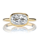 We love an east-west design for extra finger coverage and wonderful stack-ability. This Malbec ring does not disappoint with its gorgeous facets, dramatic elongated shape, and bright white color, this bezel set ring is perfectly chic.
