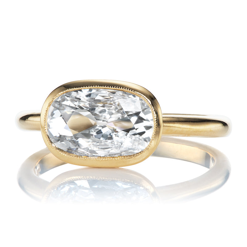 East-West Set Elongated Antique Cushion Diamond Engagement Ring