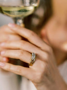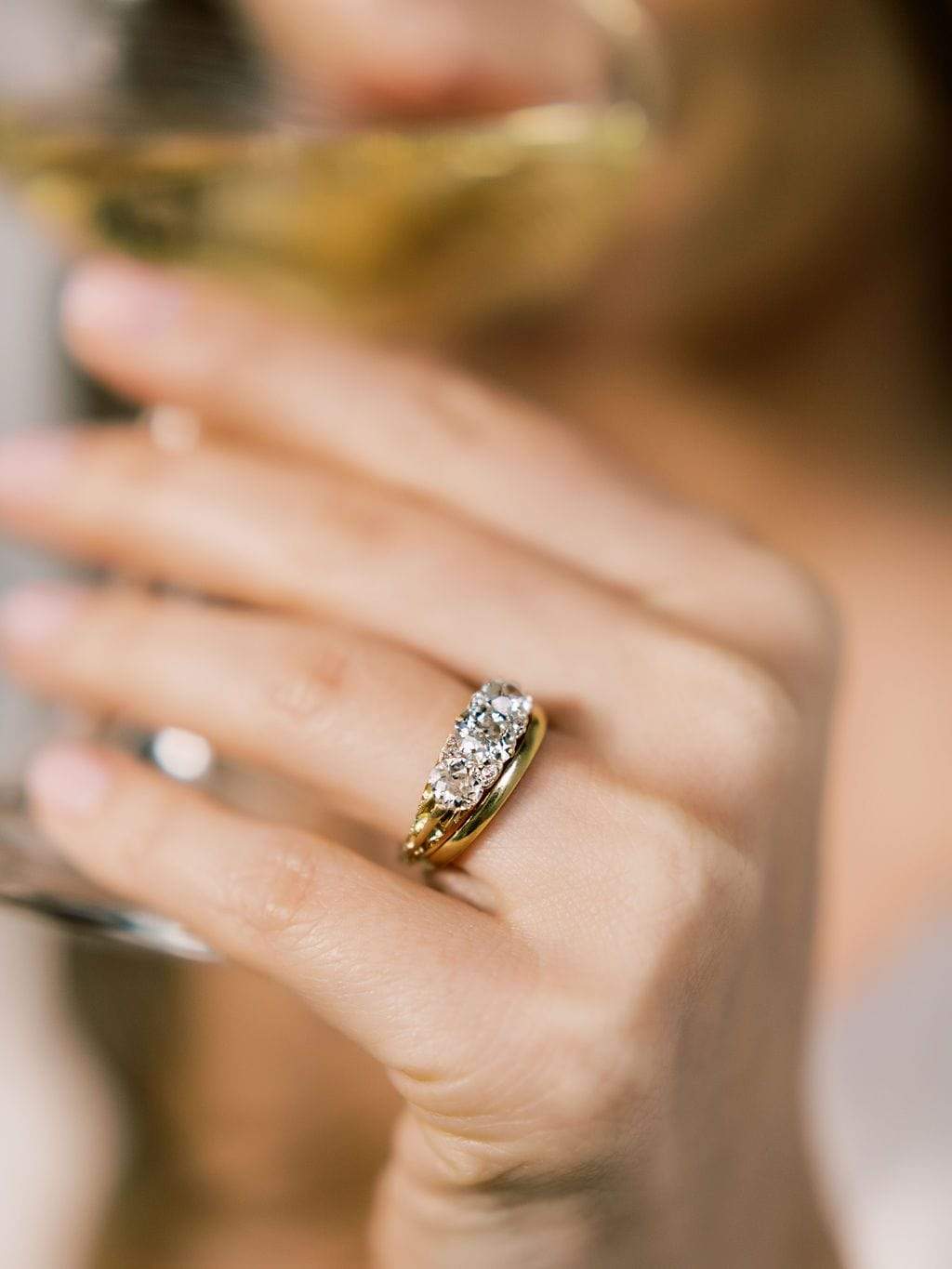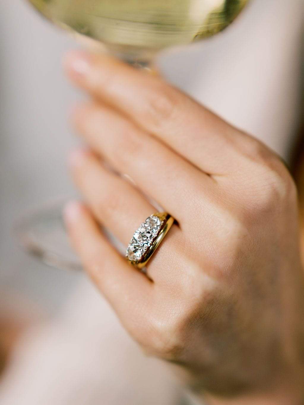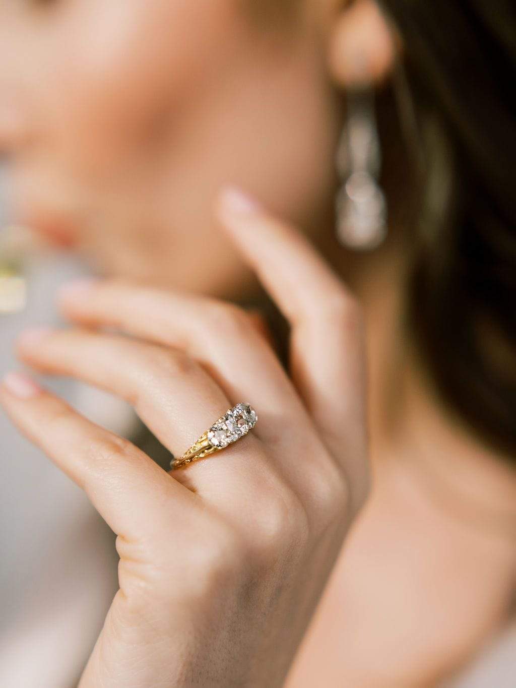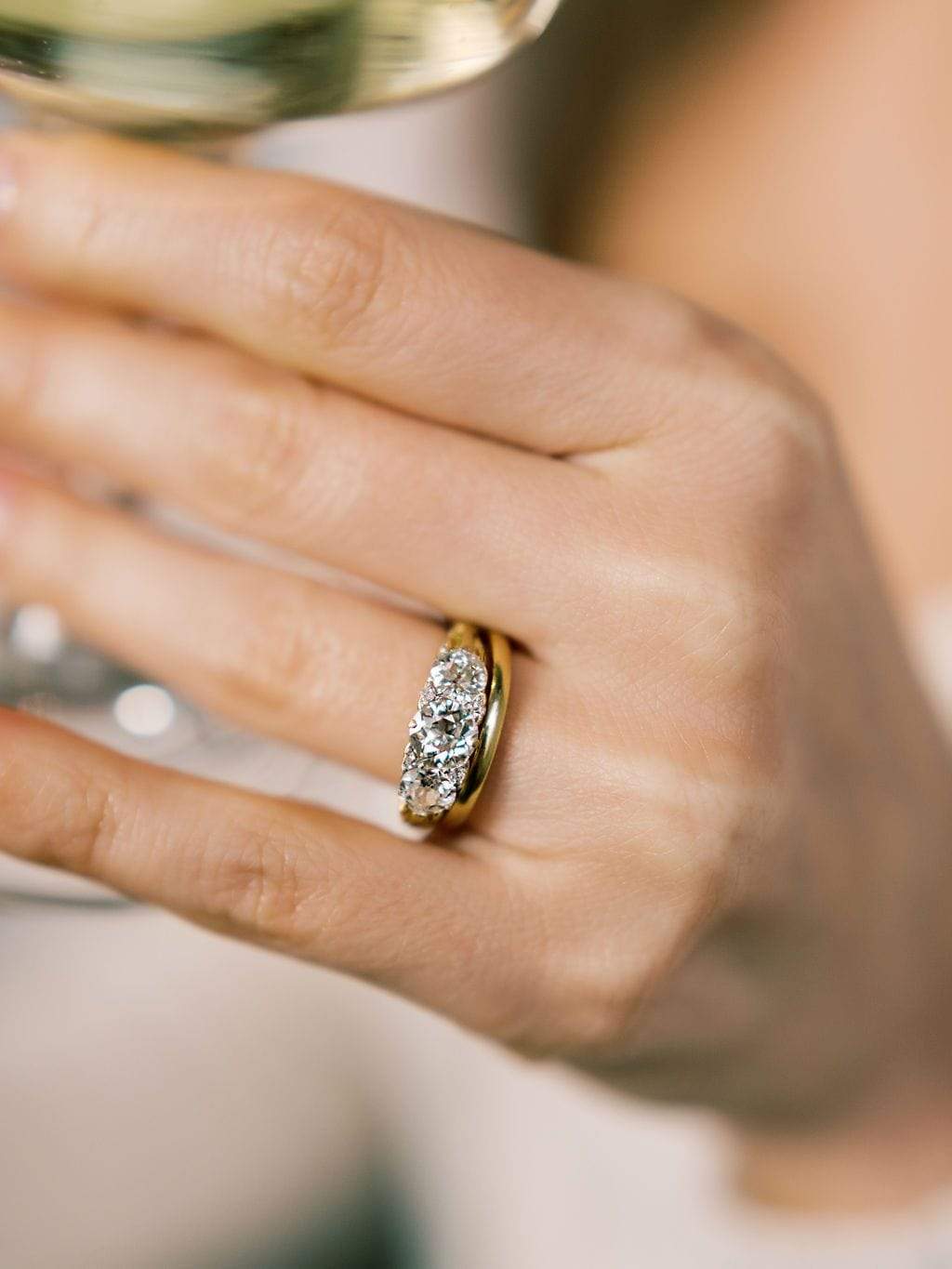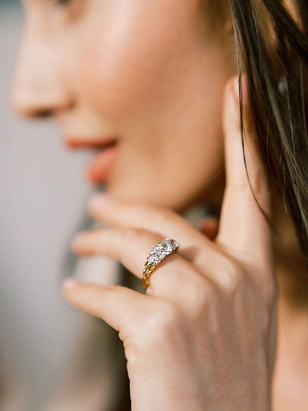 We love this antique style of ring that typically comes from the UK during the late Victorian-Early Edwardian Eras. The diamonds in this ring are incredibly bright and beautiful and span the finger so nicely.