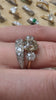 The Bernice ring is an authentic vintage diamond band from the Edwardian Era circa 1910. The ring features 21 Old Cut diamonds of approximately J-K color, all together totaling approximately 0.90 carats that go about 3/4 around the band. The stones are set in a two-tone platinum and 18kt yellow gold setting. The ring is currently size 7.25 and can be resized to some sizes!