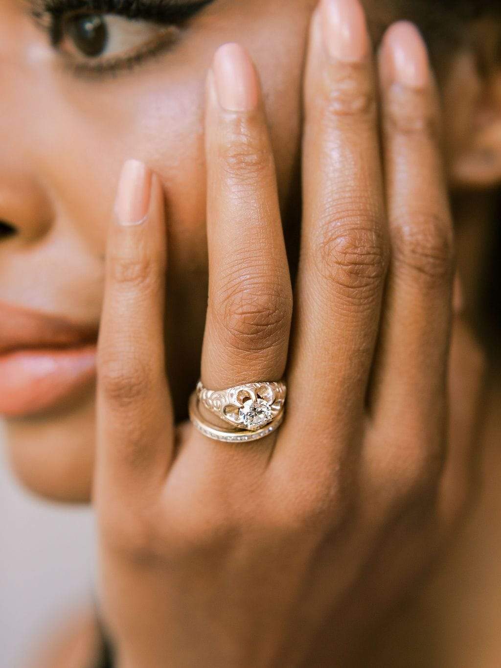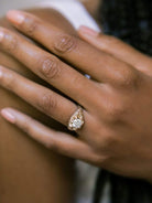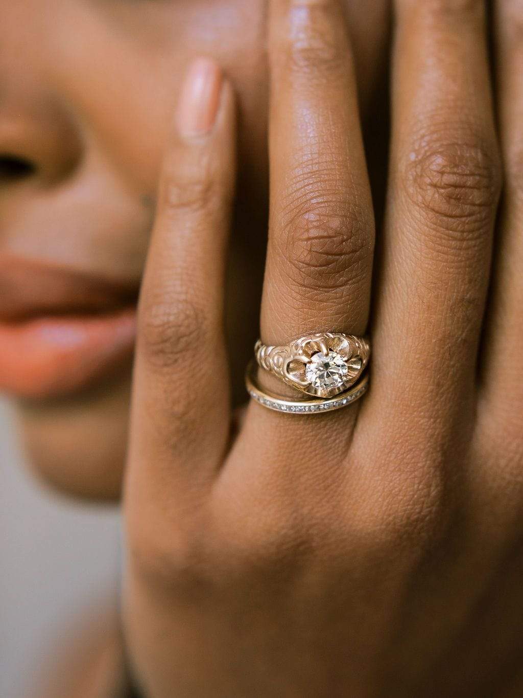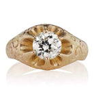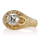 The Nadalie ring is an authentic vintage ring from the Edwardian Era. The ring centers a GIA certified 1.08-carat old European cut diamond of K color, I1 clarity. The stone is set in a chunky 14 karat yellow gold setting with hand-engravings. The ring is currently size 5.5 and can be resized!