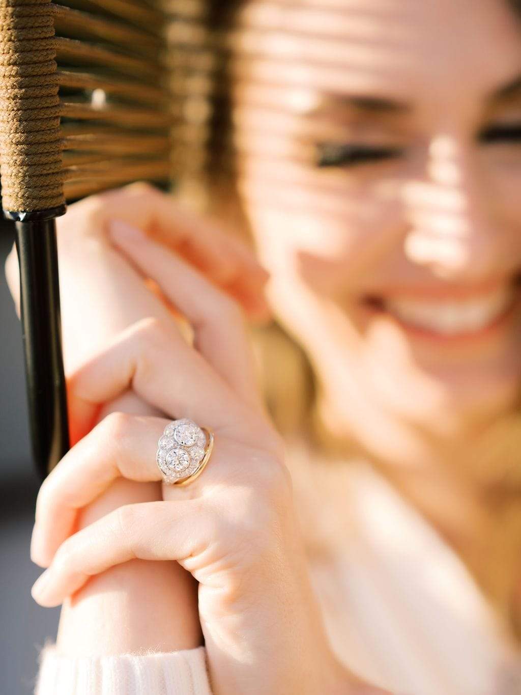 A truly amazing piece! Incredibly low profile, this dream ring wraps the finger in a beautifully elegant way. The diamonds are bright and glittering and create a wonderful display on the finger.