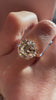 A stunning beauty with a perfectly gleaming, broad-faceted antique diamond is set in this timeless golden setting.