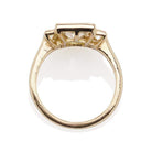 The Remmy 2.07 ring is a VB original design made right here in NYC. The ring centers a GIA certified 2.07-carat Emerald cut diamond of Natural Fancy Brown-Yellow color, VS2 clarity. A sleek, vibrantly white baguette is bezel-set to either side of the center stone. The stones are all set in an 18 karat yellow gold setting. The ring is currently size 6 and can be resized!