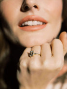 This ring is based on our original vintage Wellington ring that we adore. We recreated it in gold with a striking emerald and we are thrilled with how it turned out!