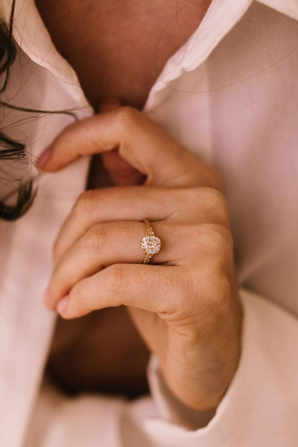 One of our favorite styles! Clean and beautiful with more details the closer you look! This old mine cut diamond has the perfect antique chunk and high-quality specs!