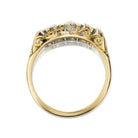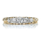 The Fern ring is an authentic vintage diamond half hoop ring from the Edwardian Era circa 1900. The ring features 5 lovely old mine cut diamonds prong set in a handmade 18kt yellow gold setting with swirling details along the top. The stones are all approximately I-J color, VS-SI clarity combining for approximately 0.55-carats. The ring is currently size 7 and can be resized!
