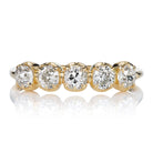 The Andria Band 0.84 is an AB original design made right here in NYC. The ring features 5 old mine cut diamonds of approximately J-K color, VS-SI clarity. The diamonds combine for 0.84 carats and are collet-set in an 18 karat yellow gold setting. The ring is currently size 6.25 and can be resized!