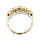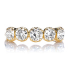 The Andria Band 1.31 is an AB original design made right here in NYC. The ring centers 5 Old European cut diamonds totaling 1.31 carats of I-J color, VS-SI clarity. The stones are set in an 18kt Yellow Gold collet setting. The ring is currently size 6.5 and can be resized!