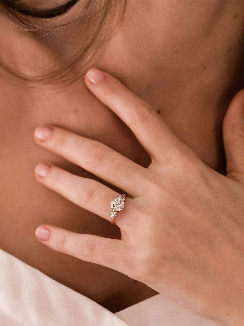 French 3 Diamond Engagement Ring