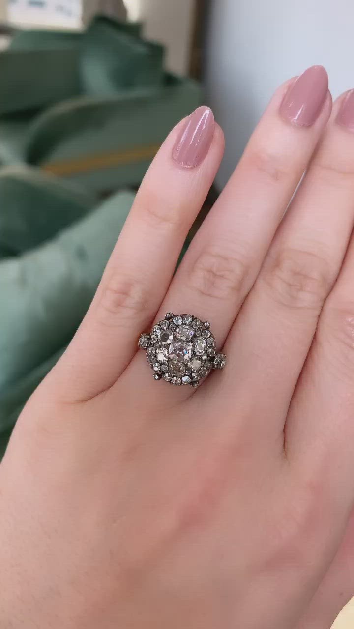 A rare, lovely, super antique piece whose style is on point today over 200 years later! Each cut is unique and different but all the diamonds come together so nicely on this cluster! Definitely a piece for the collector!