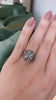 The Circe ring is an authentic Georgian era vintage ring circa the early 1800s! This Georgian Cluster Diamond Engagement Ring features 39 uniquely cut table cuts, old mine cuts, and other fun antique shapes that are set into a silver face with a closed back setting. The silver face is mounted on an 18kt yellow gold ring. The ring is currently size 6.75 and can be resized!