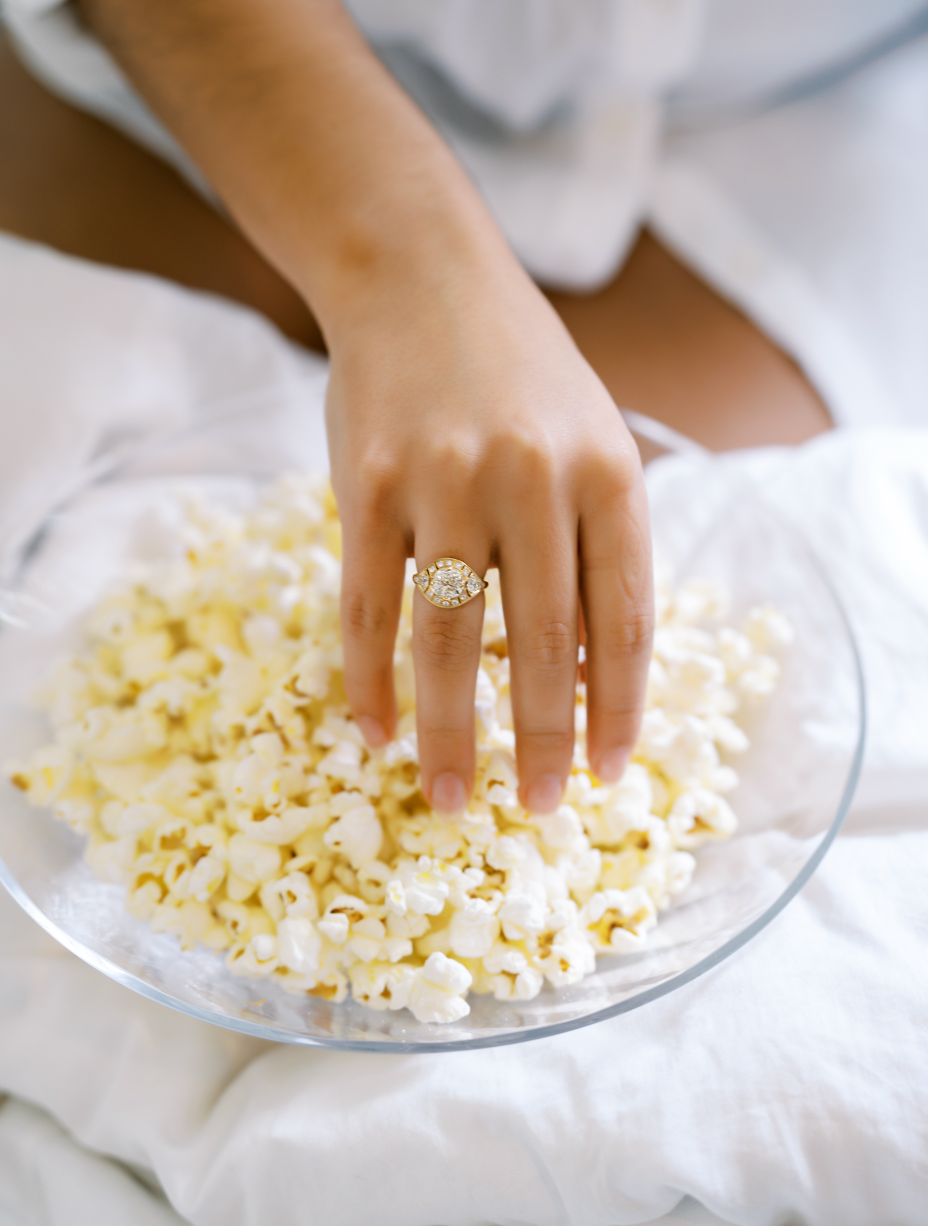 This ring is all about the glam. A gorgeous, finger covering shape studded with old cut diamonds for endless shimmer all in a low-profile ring.