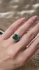 Based on one of our favorite antique rings ever, our rendition of the Aspen ring features the most mesmerizing, glowing Zambian emerald. A halo of bright white diamonds only enhances that stunning, rich myrtle green color. An amazing engagement ring or gift for the May baby in your life.