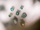 This Marielle Ring centers a stunning and perfectly hued pear cut emerald with a beautiful soft shape. The antique diamonds to the side add that beautiful OEC sparkle we so adore. The dramatic proportions create a stunning display of stones on the hand.