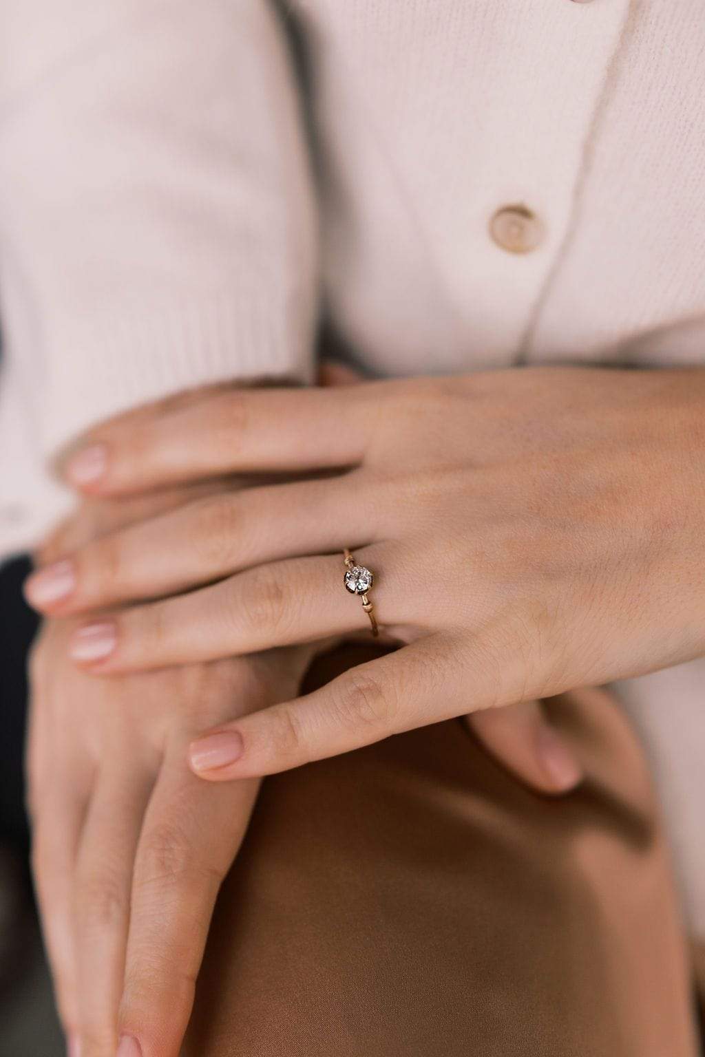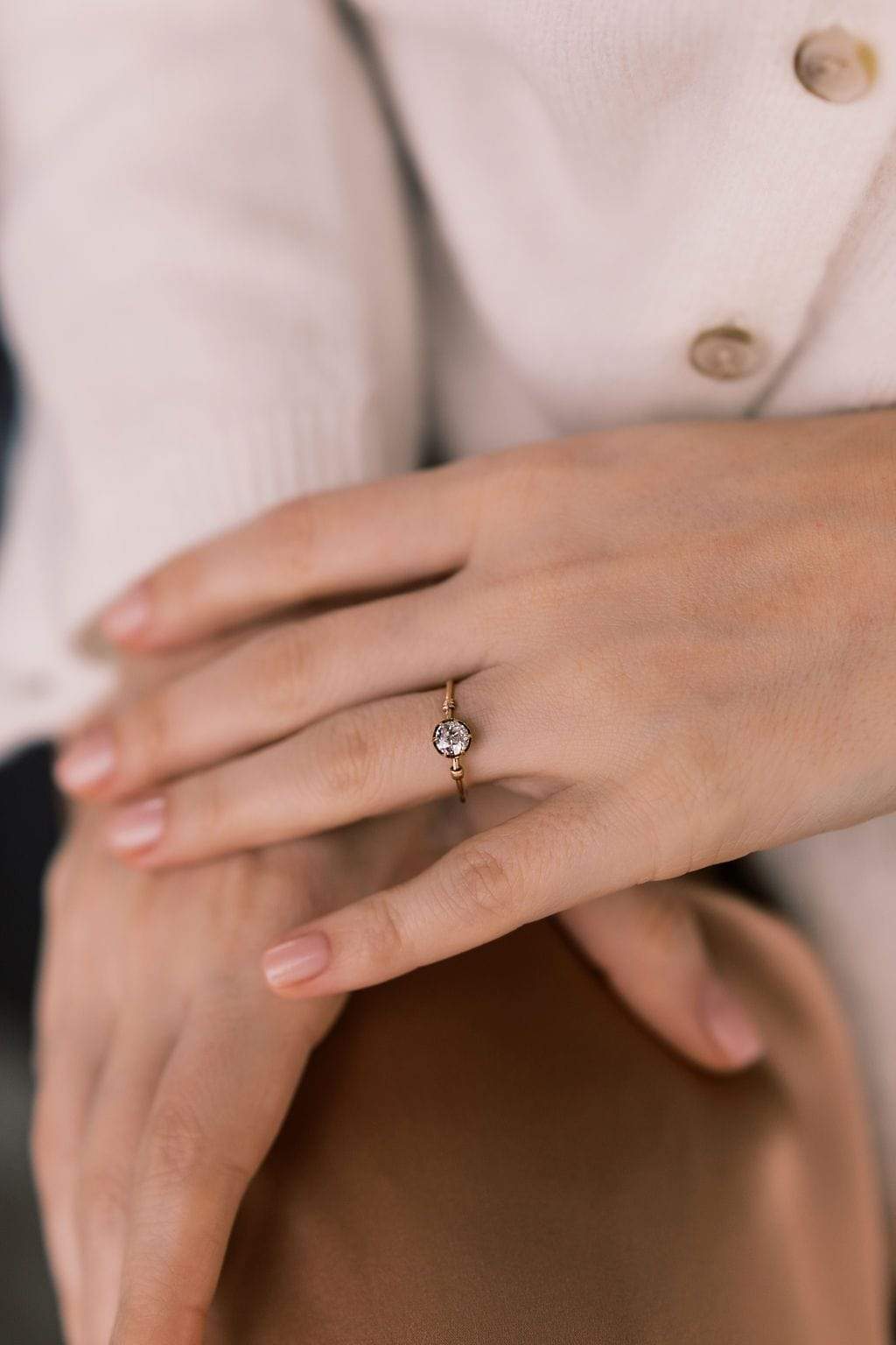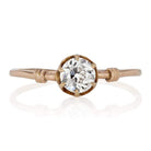 The Lola ring is a vintage diamond engagement ring. The ring centers a GIA certified 0.58-carat old European cut diamond of F color, SI1 clarity. The stone is set in a 6 prong rose gold setting. The ring is currently size 7.25 and can be resized!