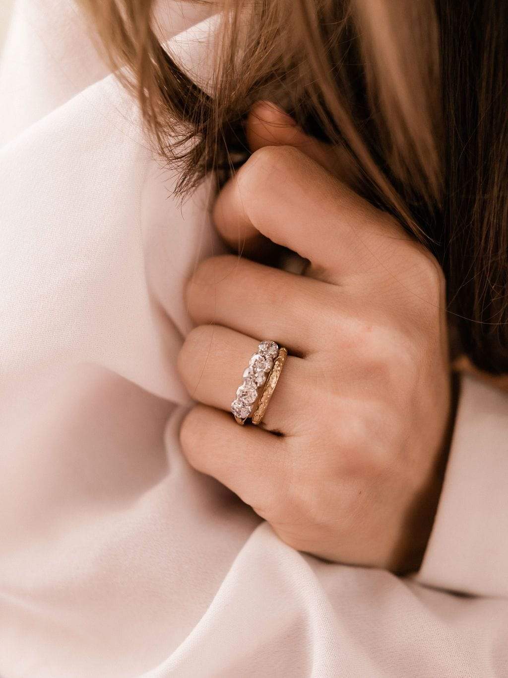 Half Collet Set 5 Stone Engagement Ring