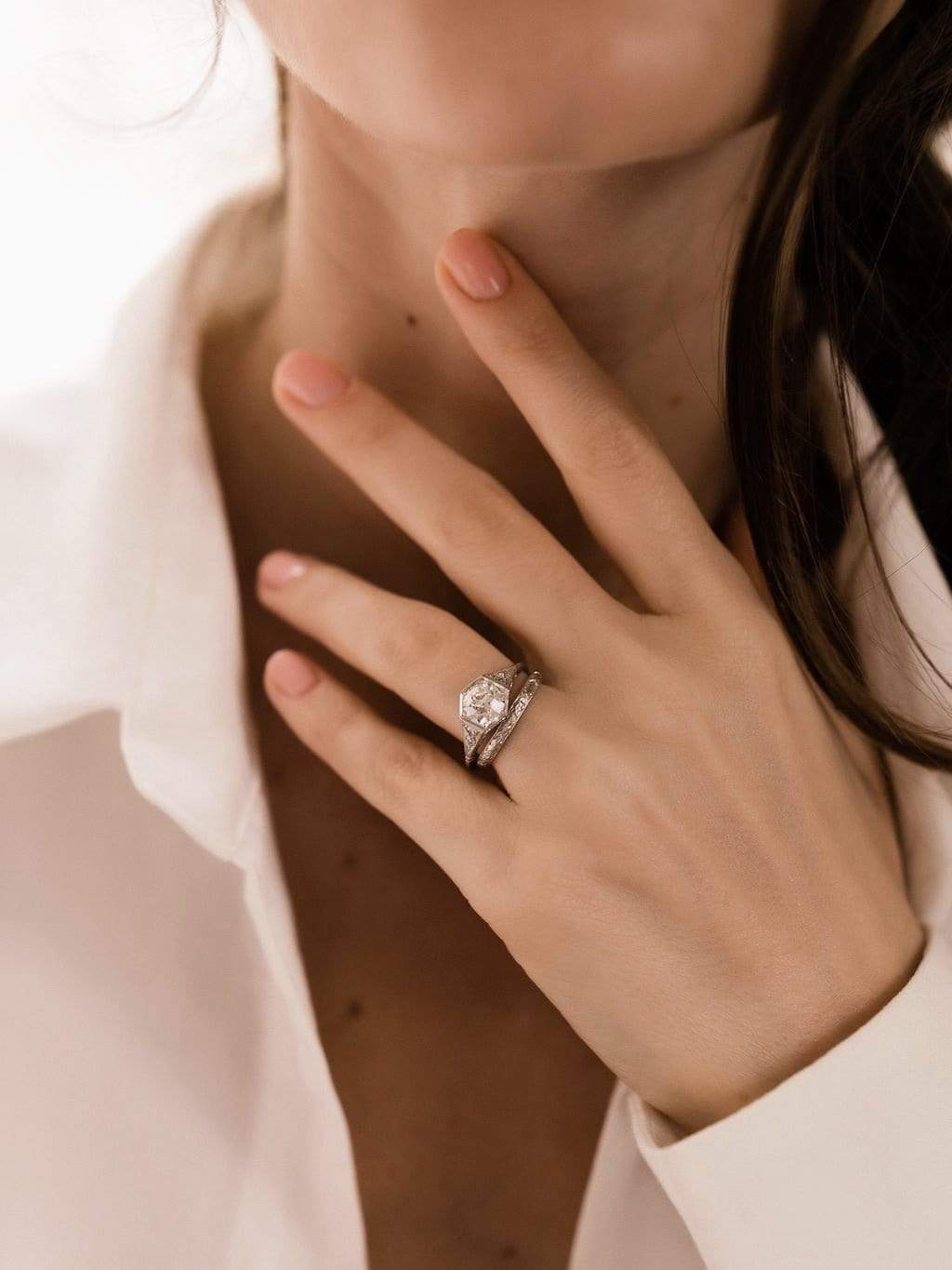 Hexagon Shaped Bezel Set Engagement Ring