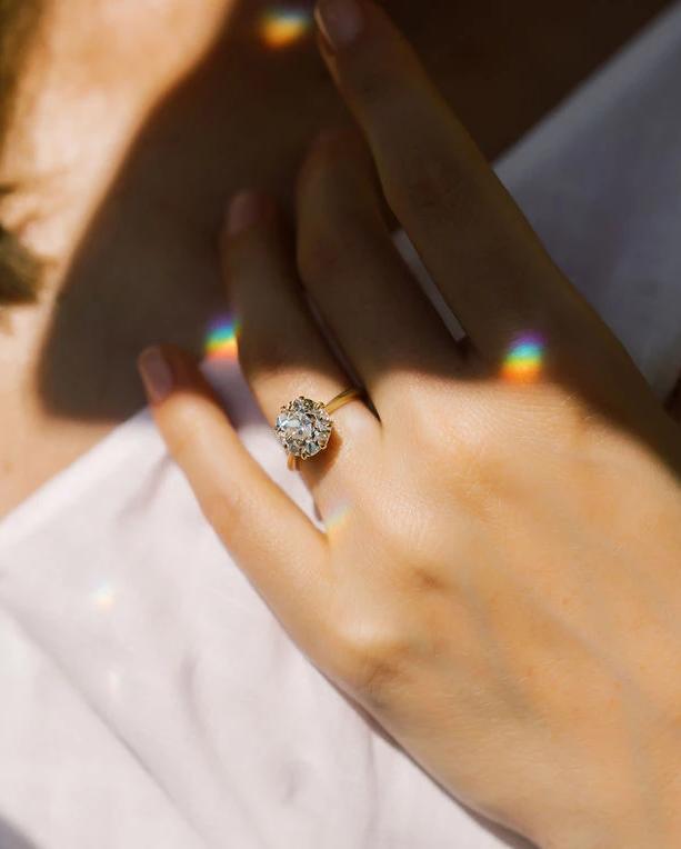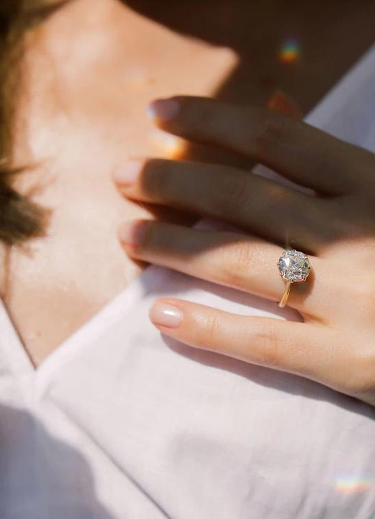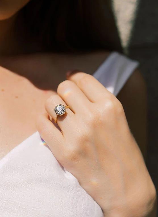 The Jen 3.95 ring is a VB-made diamond engagement ring with an absolutely gorgeous antique diamond! This Solitaire Engagement Ring centers a GIA certified 3.95 carat old European cut diamond of L color, SI1 clarity. The diamond is set in an 8 prong 18kt yellow gold setting with a tapered shank. The ring is currently size 5.75 and can be resized!