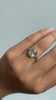 This center stone is an elongated dream of an old mine cut- the shape we seek every day and only occasionally come up with. The antique side stones add just the perfect amount of glimmer to this chic, bezel-set ring.