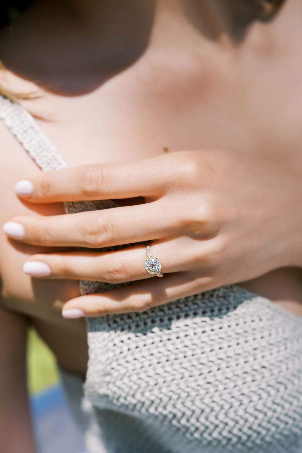 The Arizona 2.00 ring is a VB design made right here in NYC. The ring centers a GIA-certified 2.00-carat old European cut diamond of M color, VS2 clarity. The stone is set in an 8-prong 18 karat yellow gold setting with three old European cut diamonds bead-set into each shoulder. The ring is currently size 6 and can be resized!