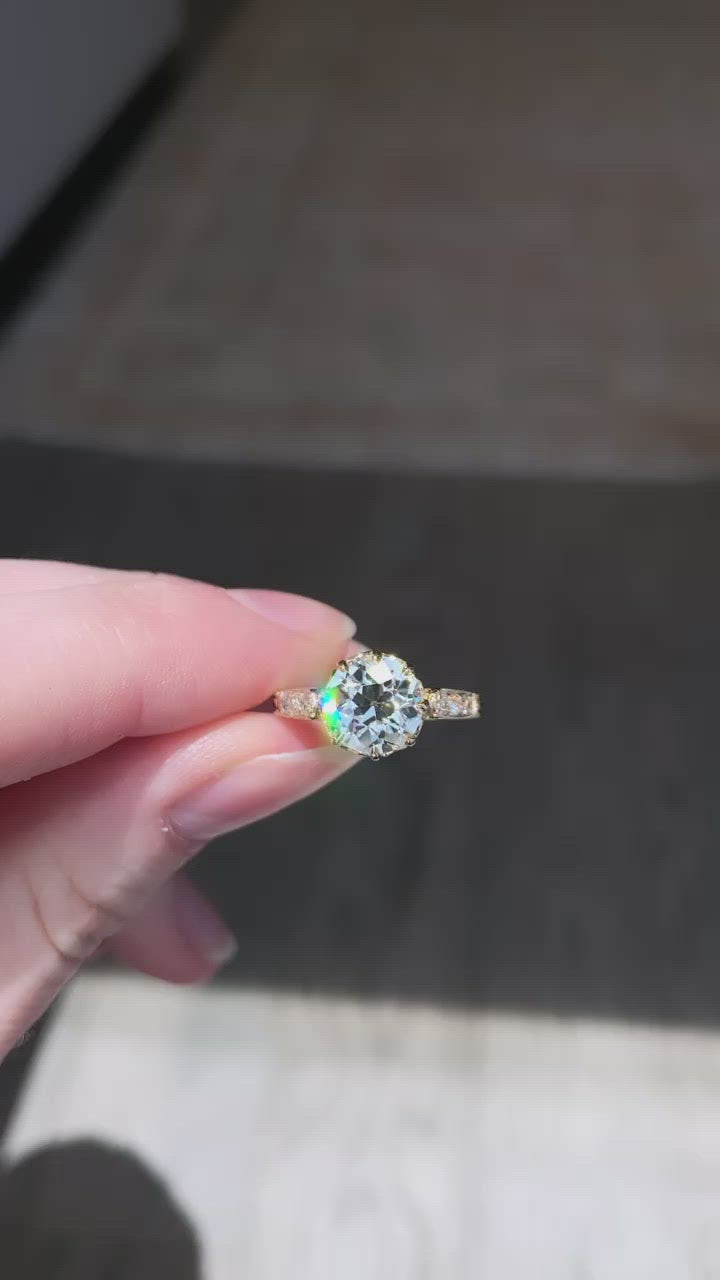 Low Profile 2 carat Old European Cut Engagement Ring with Side Stones