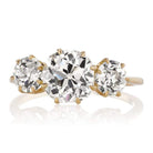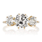 The Marielle 1.63 ring is a VB original design made right here in NYC using authentically antique diamonds. The ring centers a GIA certified 1.63-carat old mine cut diamond of I color, SI2 clarity. To each side of the center stone is an old mine cut diamond, both combining for 0.91 carats. The stones are all set in an 18 karat yellow gold setting. The ring is currently size 5.75 and can be resized!