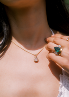 This flat and spready stone is perfectly complimented by her chunky gold setting. The thick gold and flat diamond give this Lulu pendant the perfect big and bold look.