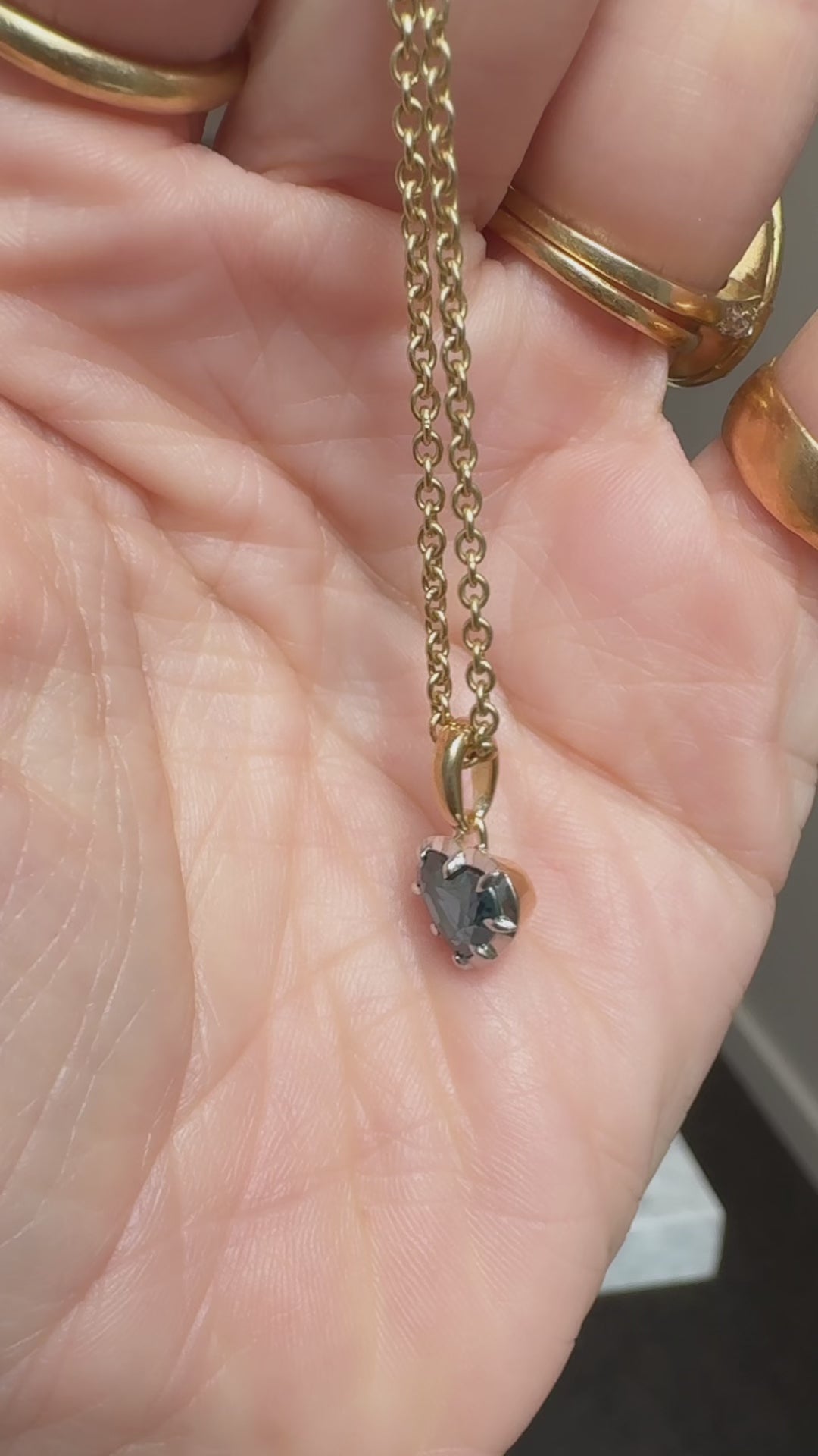 The Lulu Pendant 2.01 is an AB original design made right here in NYC. The pendant features a 2.01 carat no-heat Heart Shaped Sapphire. The stone is collet-set in a two-tone 18kt yellow gold and platinum setting with an 18kt gold bail.