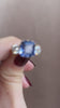 Once you see this dream for yourself, you'll understand it's impossible not to love it. Dramatic proportions, beautiful colors, full finger coverage, a low-profile, and plays nicely with bands. Catch this beautiful sapphire before she's gone for good.