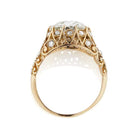 The Malvet ring is an authentic vintage ring from the Victorian Era circa 1890. The ring centers a GIA certified 2.95-carat old European cut diamond of M color, SI1 clarity. The diamond is set in a 10 prong yellow-gold setting. The ring is decorated with 22 rose-cut diamonds set throughout open filigree work. The ring is currently size 6.25 and can be resized!