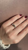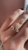 We love the fun hues that diamonds can come in and this beauty centers this lovely champagne antique diamond with vibrant white old European cut diamonds on the side to contrast.