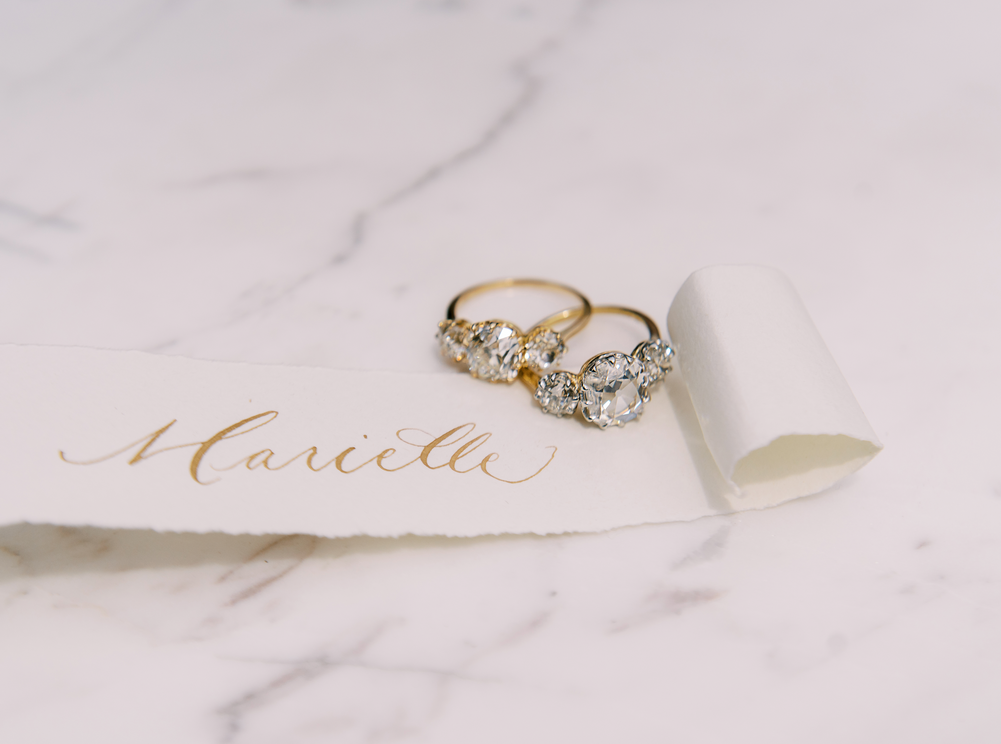 We love a gorgeous flat diamond that produces such a unique, watery sparkle and faces up much larger than other 2 carat diamonds. The two-tone of this Marielle ring enhances the whiteness of these gorgeous diamonds but still gives you that warm yellow gold.