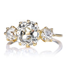 Three Stone Old Mine Cut Diamond Engagement Ring in 18kt Yellow Gold Setting