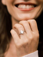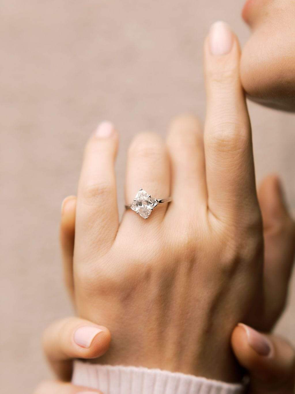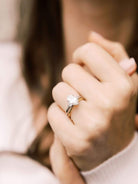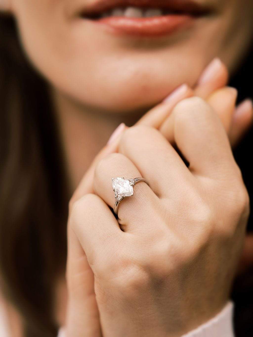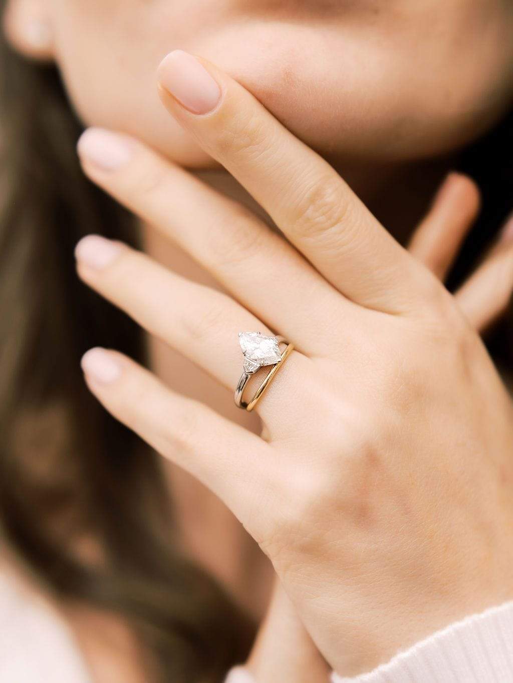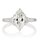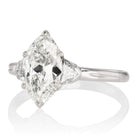 We love any antique marquise diamond but the side stones of this ring elevate the originality of this ring. The half moons create a beautiful flow to this low-profile stunner.
