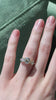 We love the elegant flow that the pears add to this gorgeous piece. The center stone has just a hint of this beautiful champagne hue that contrasts with the vibrantly white side stones. We love this three-stone ring for its finger coverage and lots of fiery shine.