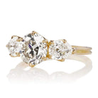 The Melissa 2.05 ring is a VB original design made right here in NYC. The ring centers a GIA-certified 2.05-carat old European cut diamond of M, Faint Brown color, VS2 clarity. The stone is set in a 6-prong 18 karat yellow gold setting with a vibrantly white pear cut diamond of approximately F-G color, VS clarity set east-set to either side. The ring is currently size 5.75 and can be resized!