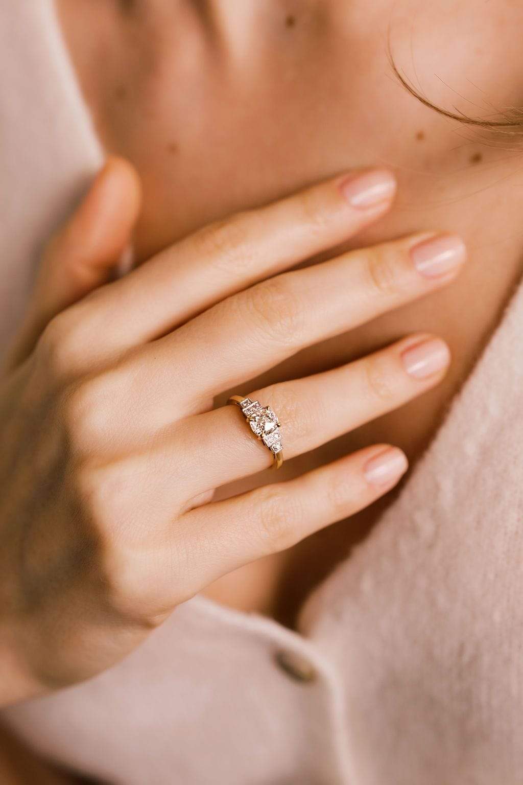 The Meyer 1.20 ring is a vintage-inspired VB-made diamond engagement ring. The ring centers a GIA certified 1.20-carat Old Mine Jubilee cut diamond of J color, VS2 clarity. The stone is set in a 4 prong 18-karat yellow gold setting. To each side are three old European cut diamond set into gold settings. The ring is currently size 6 and can be resized!