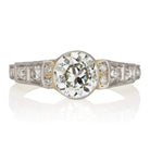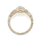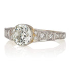 The Miriam Ring is a milgrain bezel engagement ring from the Art Deco Era, circa 1920! This ring centers a 1.27 carat old European cut diamond of approximately M-N color, VS2 clarity. The diamond is bezel-set in a platinum-topped 14 karat yellow gold setting. Six single cut diamonds line each side set amidst millegrain detail. The ring features hand engravings on the sides of the yellow gold with brushed platinum continuing all the way around the ring! The ring is size 5.5 and can be resized!