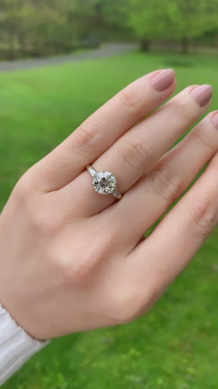 Old European Cut Diamond Engagement Ring with Baguettes