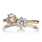 Sisters, not twins- these two Champagne diamonds have the brown tones we love to see but in differenct ways. The contrasting colors of this toi et moi ring bring a romantic touch, beautifully symbolizing the coming together of two people. Set in a smooth 18k gold setting this ring has such a delicate feel.