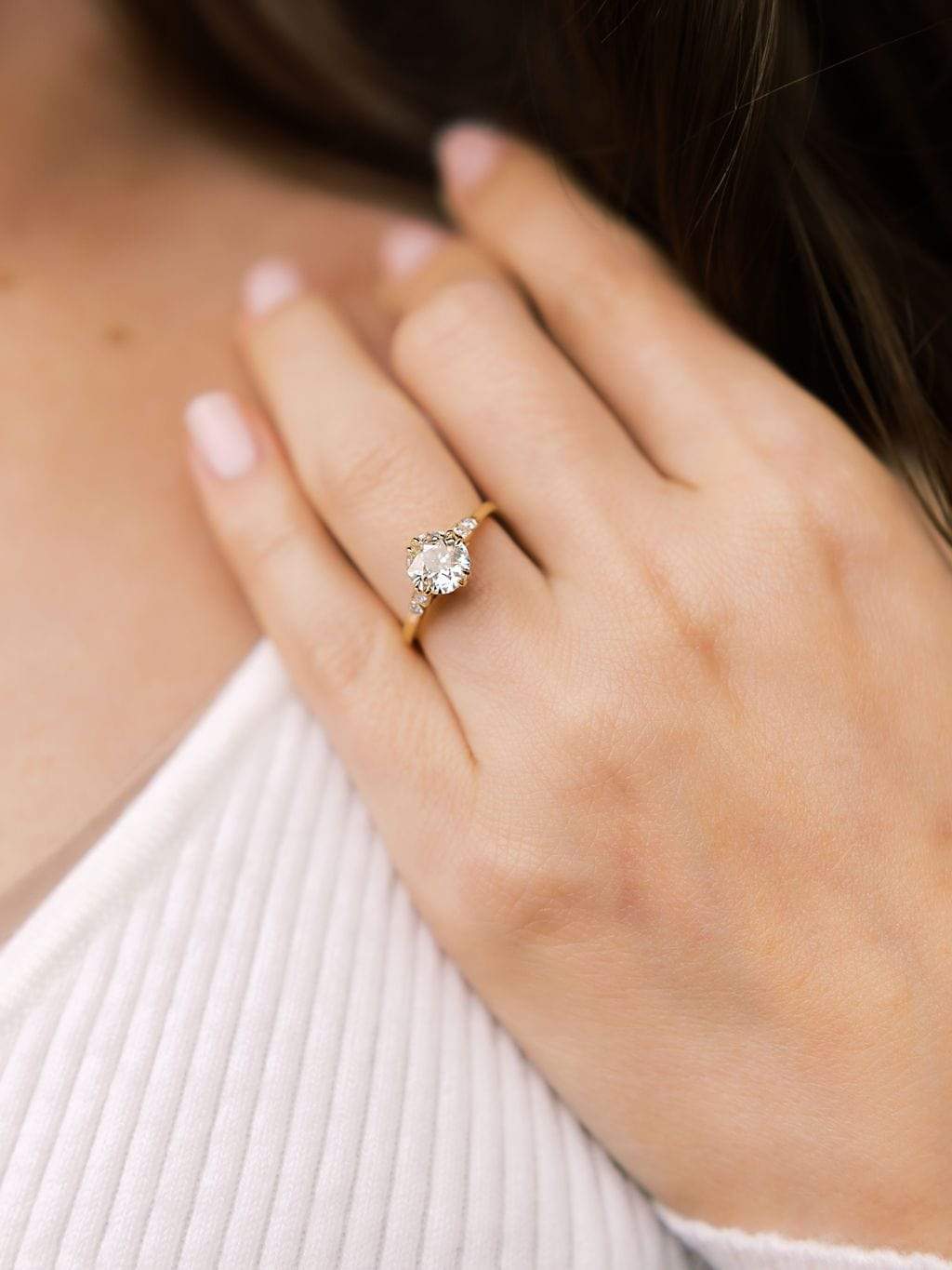 The Paloma is a forever favorite. A lovely balance between detailed, clean, and delicate. The center diamond on this ring has a beautiful shimmer that we adore.
