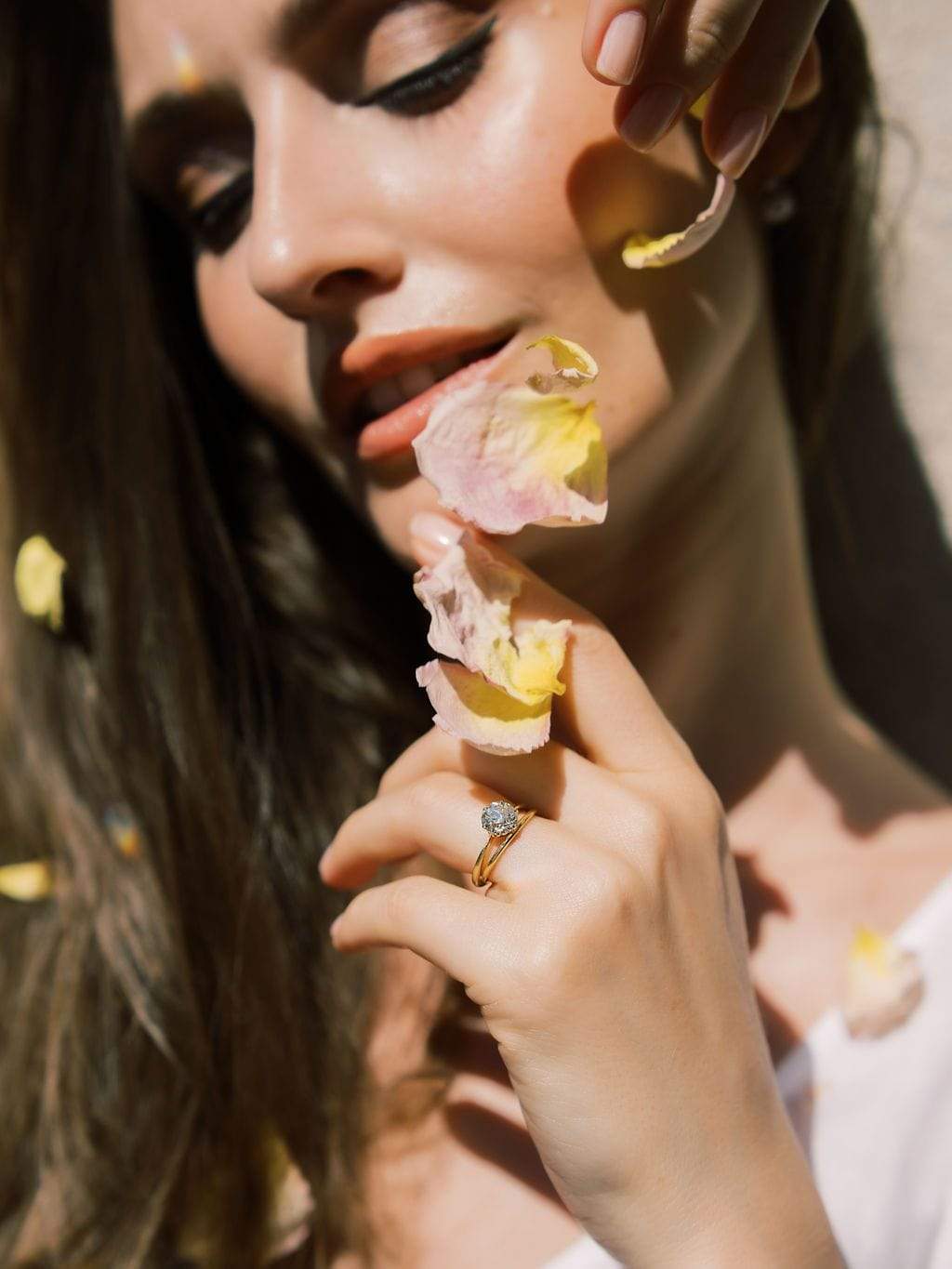 The Bea 1.49 is a VB-made Old European Cut Diamond engagement ring. This 1.49 ring centers a GIA certified 1.49 carat old European cut diamond of J color, VS2 clarity. The diamond is set in a 6-prong 18 karat yellow gold setting with a tapered shank. The ring is currently size 6 and can be resized!