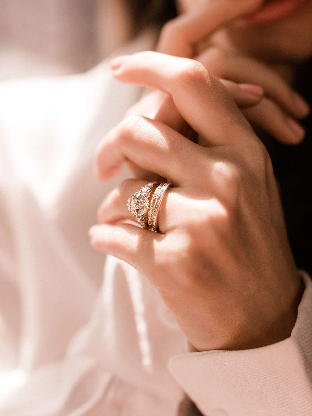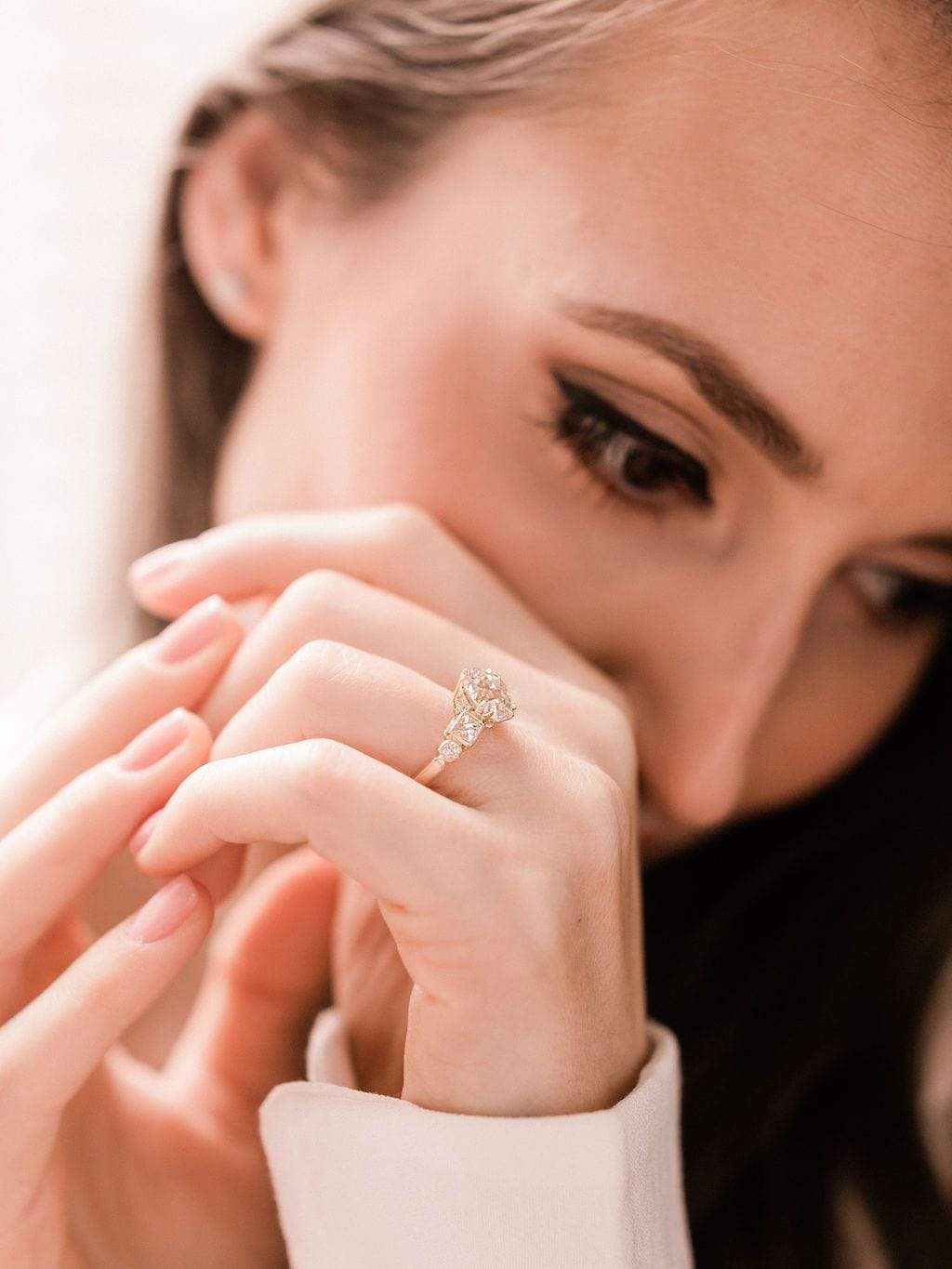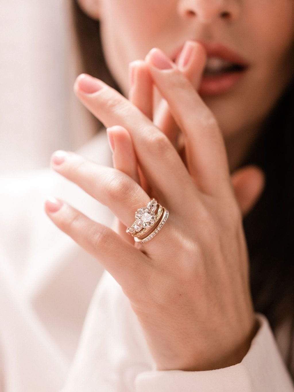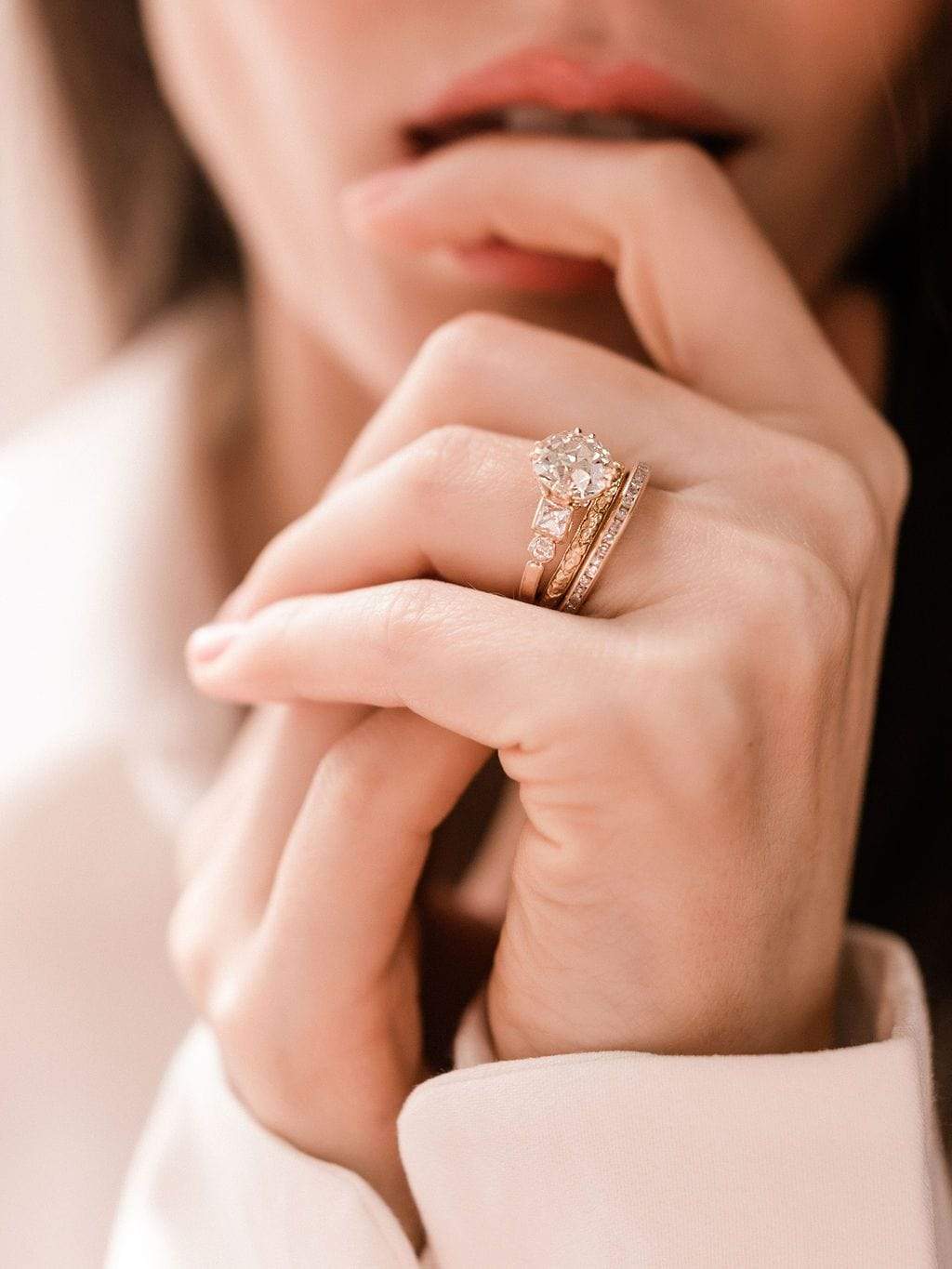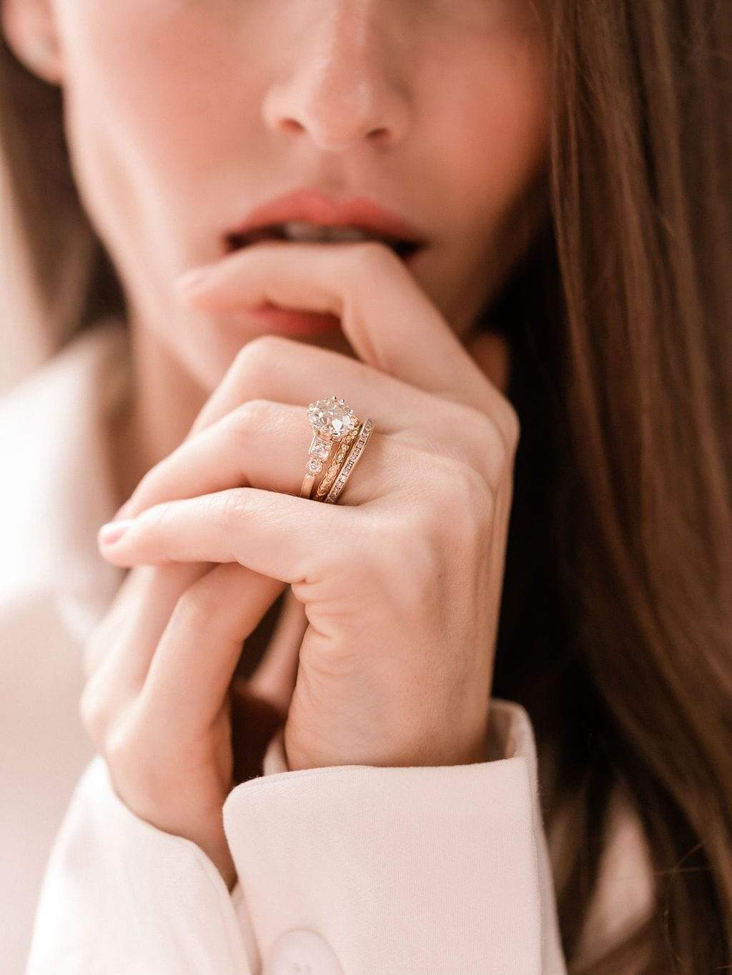Big fans of the Paloma ring for many reasons: that lovely finger spread, those unique side stone shapes reminiscent of a chandelier, a gorgeous center stone, and lovely gallery details!